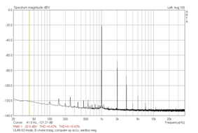 Look how effectively the choke removes the hum, but also dramatically reduces the intermodulation products of the signal (1 kHz) with power supply ripple (100 Hz)
